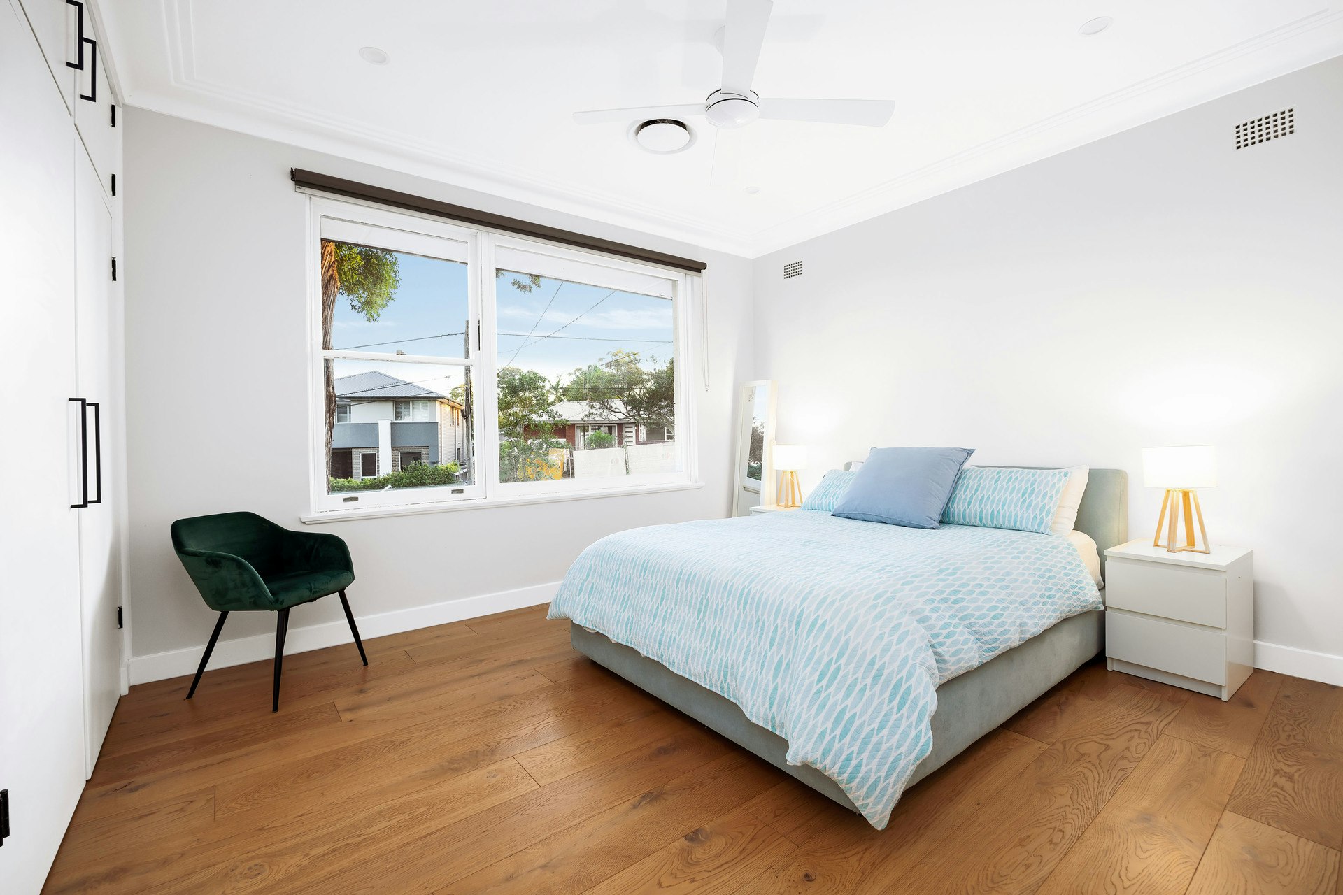Ducted air conditioning, ceiling fans, wide engineered oak flooring, LED lighting
