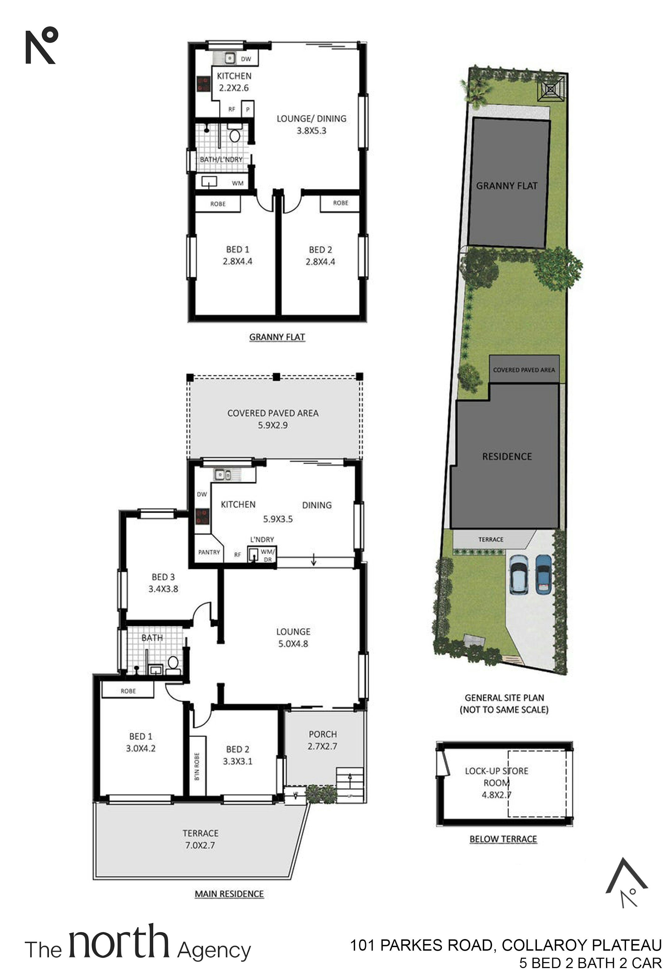 • Main residence with 3 bedrooms and separate 2-bedroom granny flat