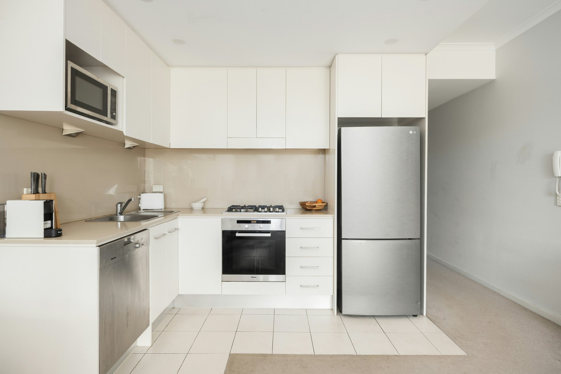 • Modern kitchen with premium Miele appliances, gas cooktop, and stone benchtops