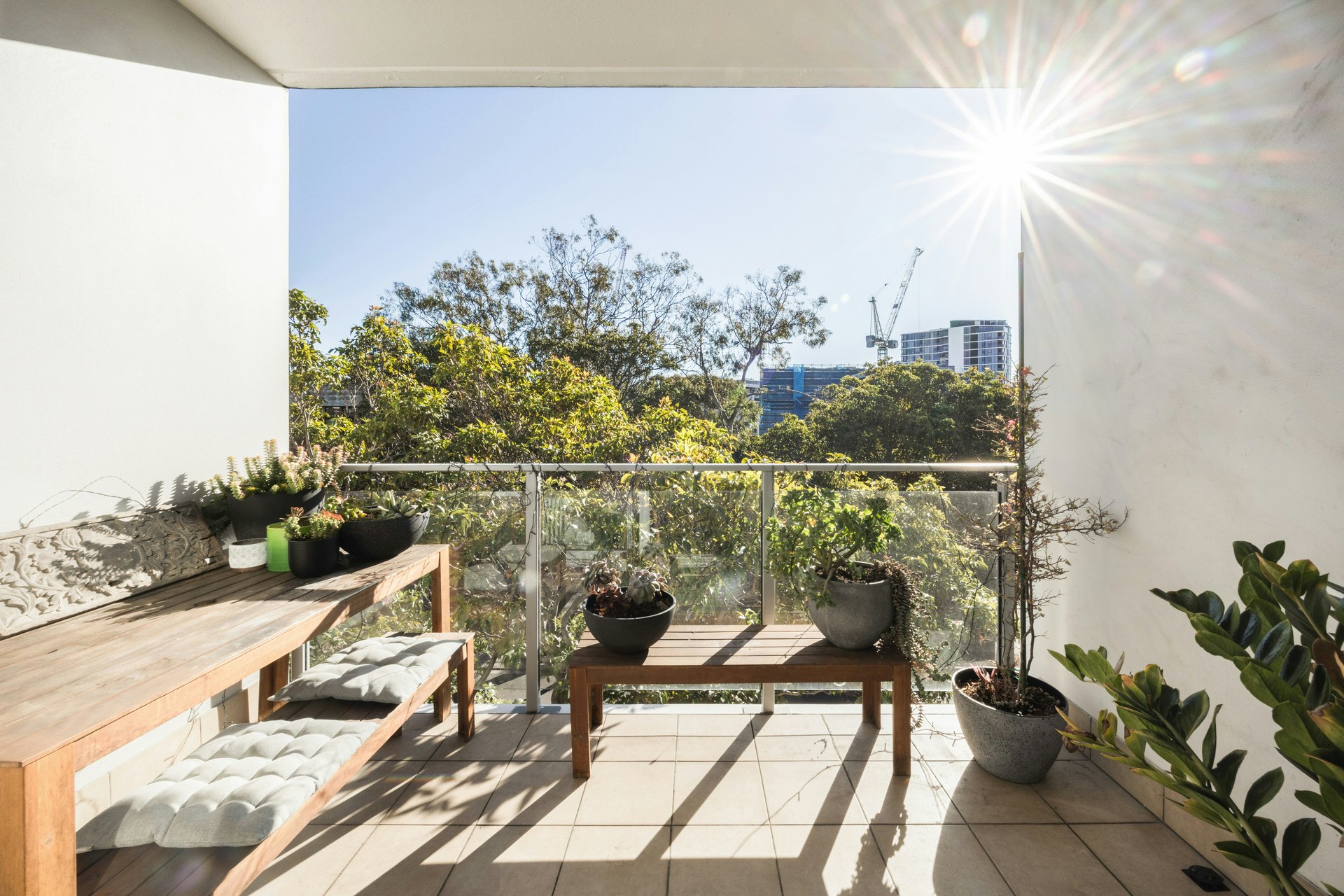 • Private balcony with peaceful leafy outlook and additional front courtyard