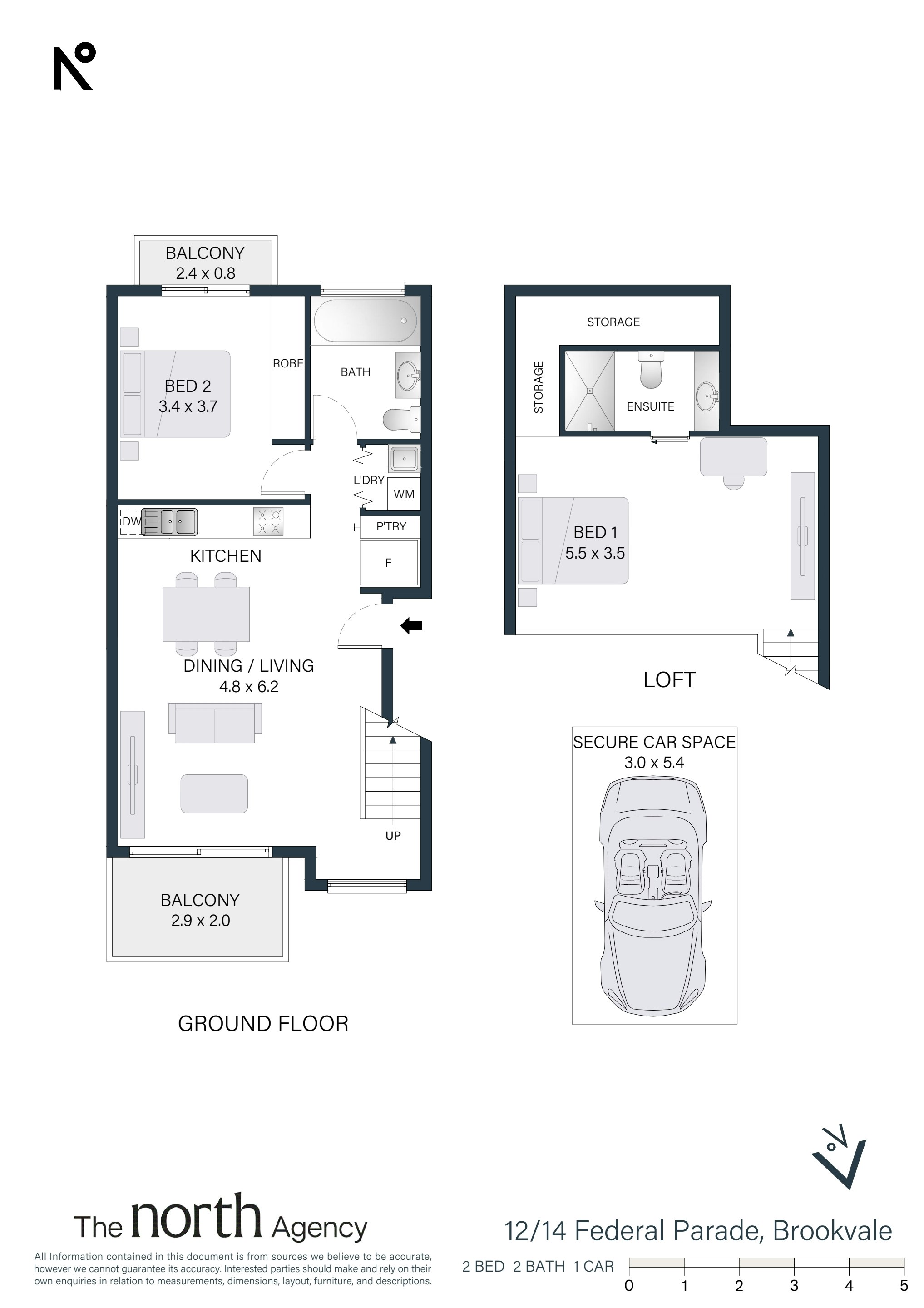 • 2 bedrooms, 2 bathrooms including loft-style master with ensuite