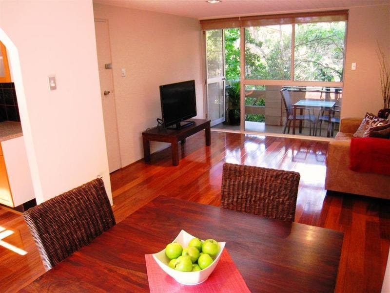 The apartment features a spacious living area with stunning "Merbau" timber floors opening to a large balcony with a leafy outlook, modern kitchen with gas cooking, separate dining area with second balcony, brand new bathroom, two double bedrooms with plantation shutters, main bedroom with mirrored BIR's.