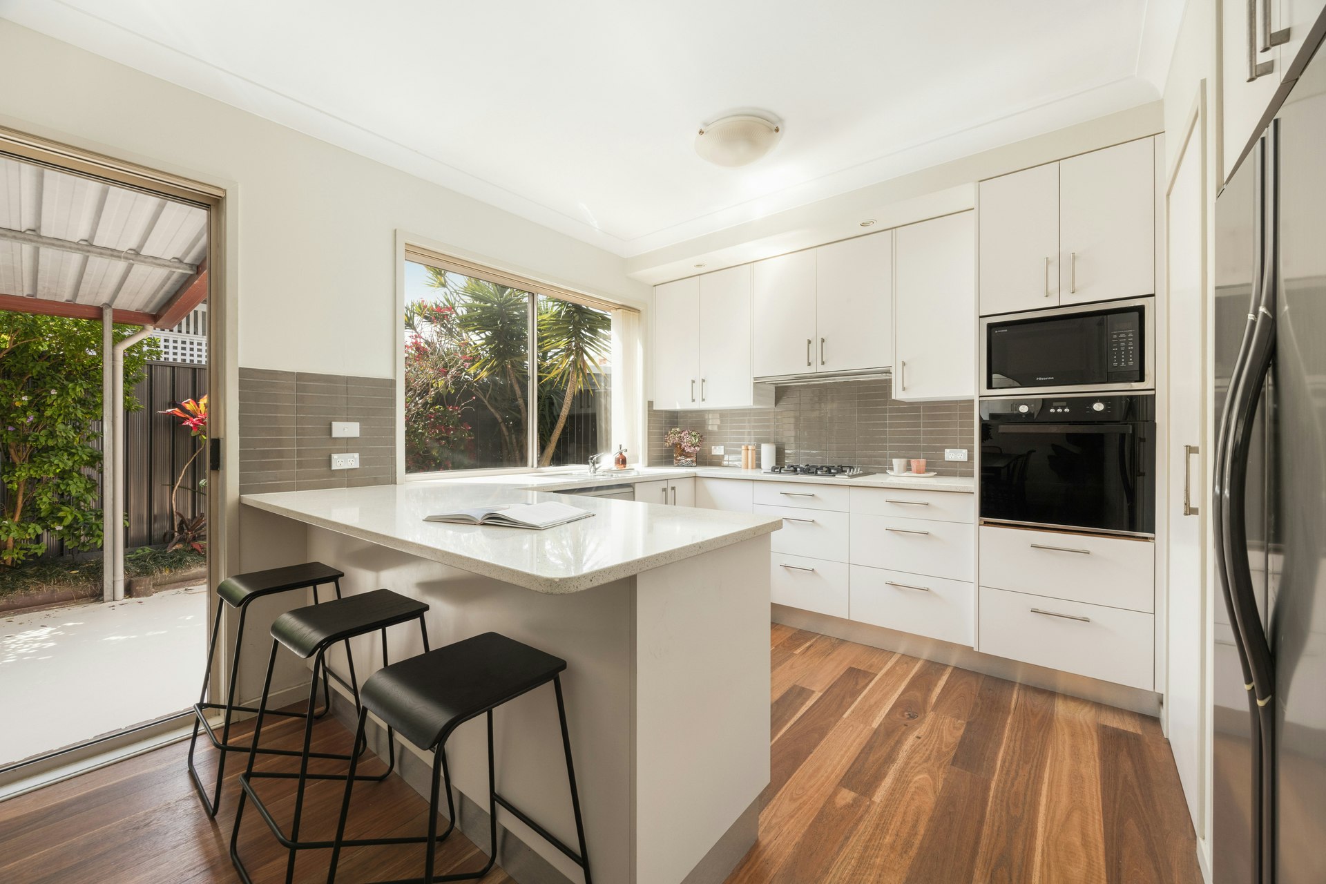 The home reveals inviting and versatile living spaces that flow seamlessly outdoors to a fully fenced, pet-friendly front and rear garden and entertaining space. At the heart of the home, a contemporary stone kitchen boasts gas cooking, wall-mounted oven, dishwasher, stone benchtops, and a generous walk-in pantry. The upper level accommodates three spacious bedrooms, each with built-in robes, including the main with air conditioning.