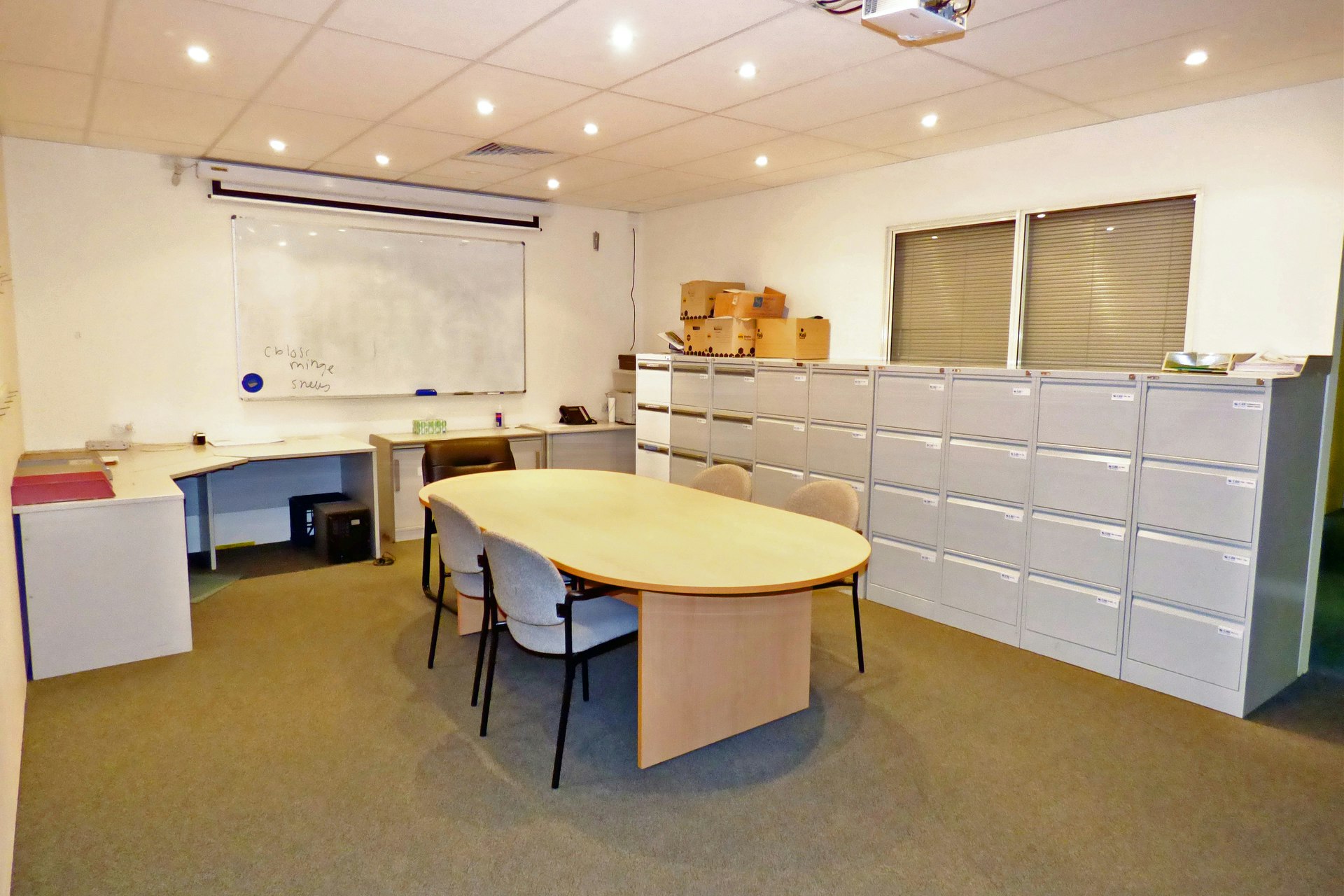 - Partitioned, commercial grade carpet & air-conditioned