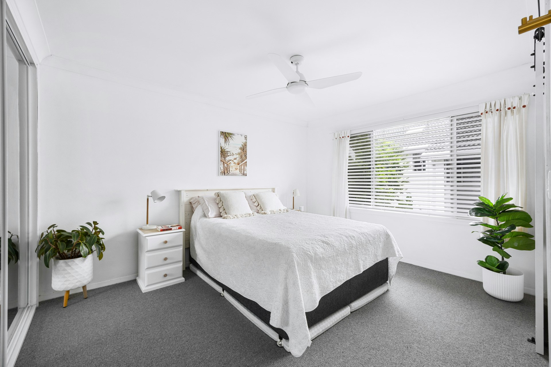 • Wooden floors, carpeted bedrooms with built-ins and ceiling fans.