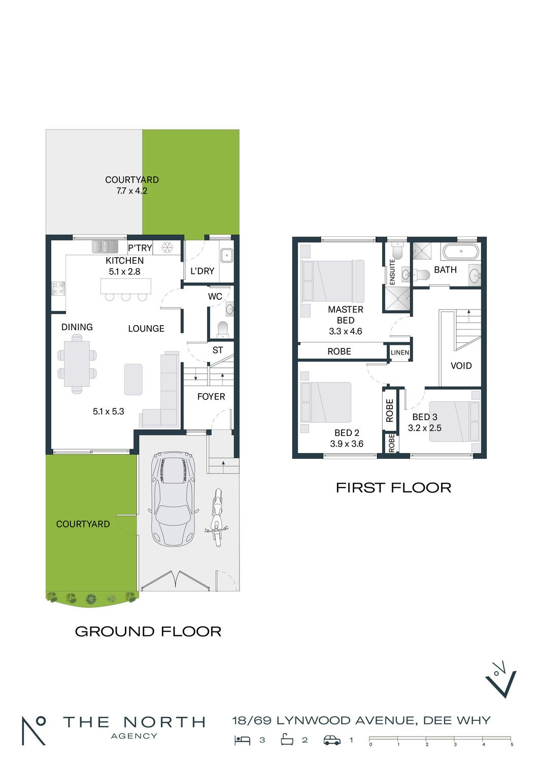 • Front and rear courtyards, perfect for kids, pets, or relaxing