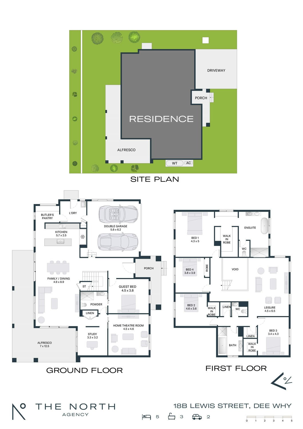 On the upper level, three oversized bedrooms and master suite with walk in robe and ensuite rest privately with easy connection to an additional living area. Offering flexible living, the entrance level boasts a separate media room fitted with cabling for a home theatre, home office and fifth bedroom with contemporary ensuite bathroom, perfect for multi-generational families, au pair or guests.