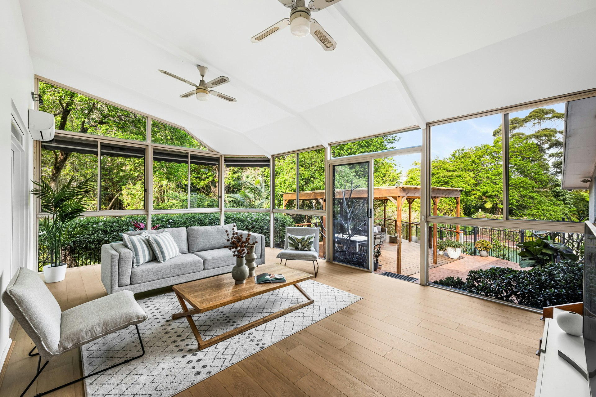Expansive sunlit living area with air conditioning flows seamlessly to the outdoors