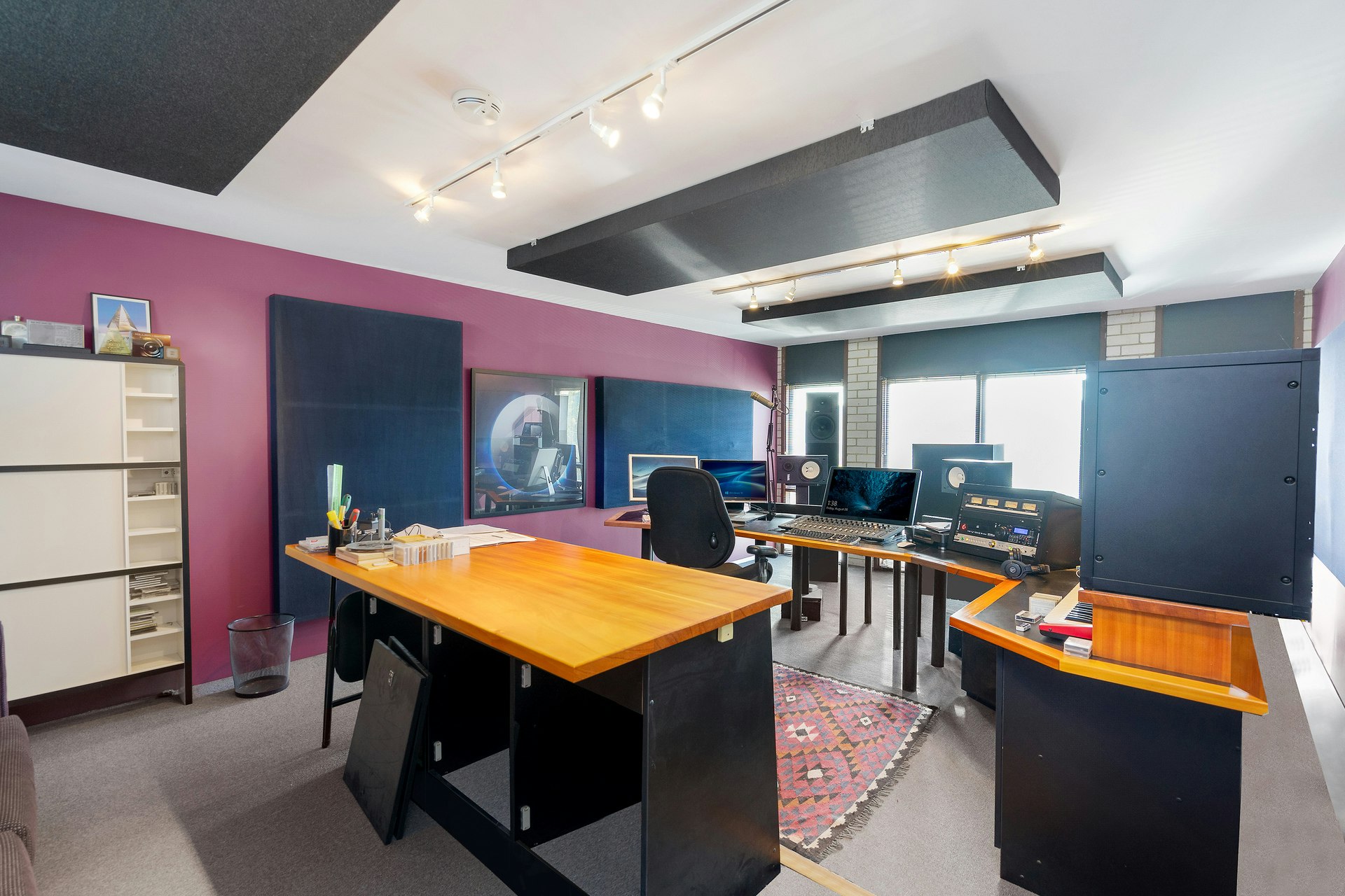 Facilities: Equipped with a kitchenette, two private office spaces, and a studio area perfect for recording or podcasting