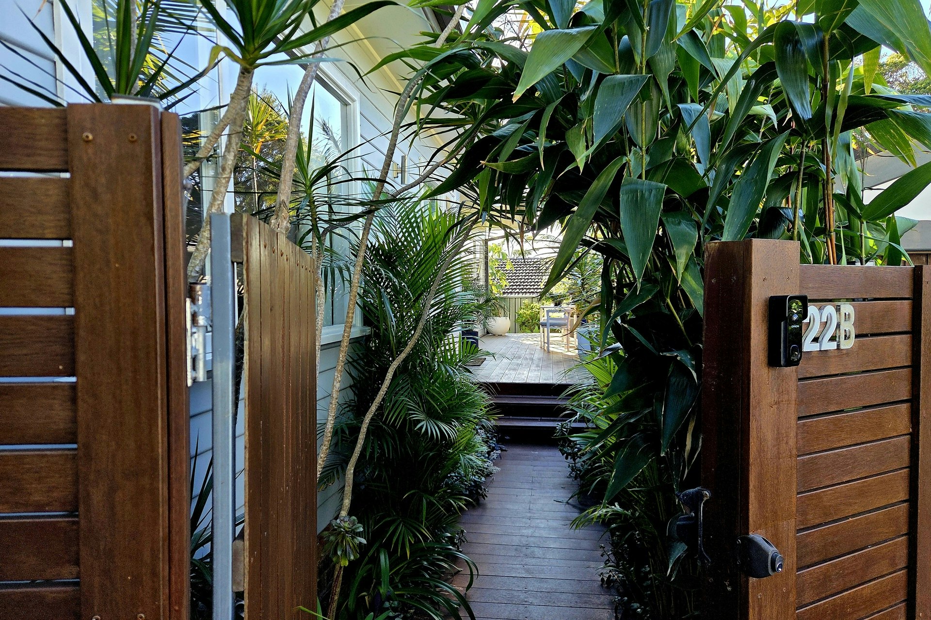 - Level, fully enclosed block framed by low-maintenance tropical gardens