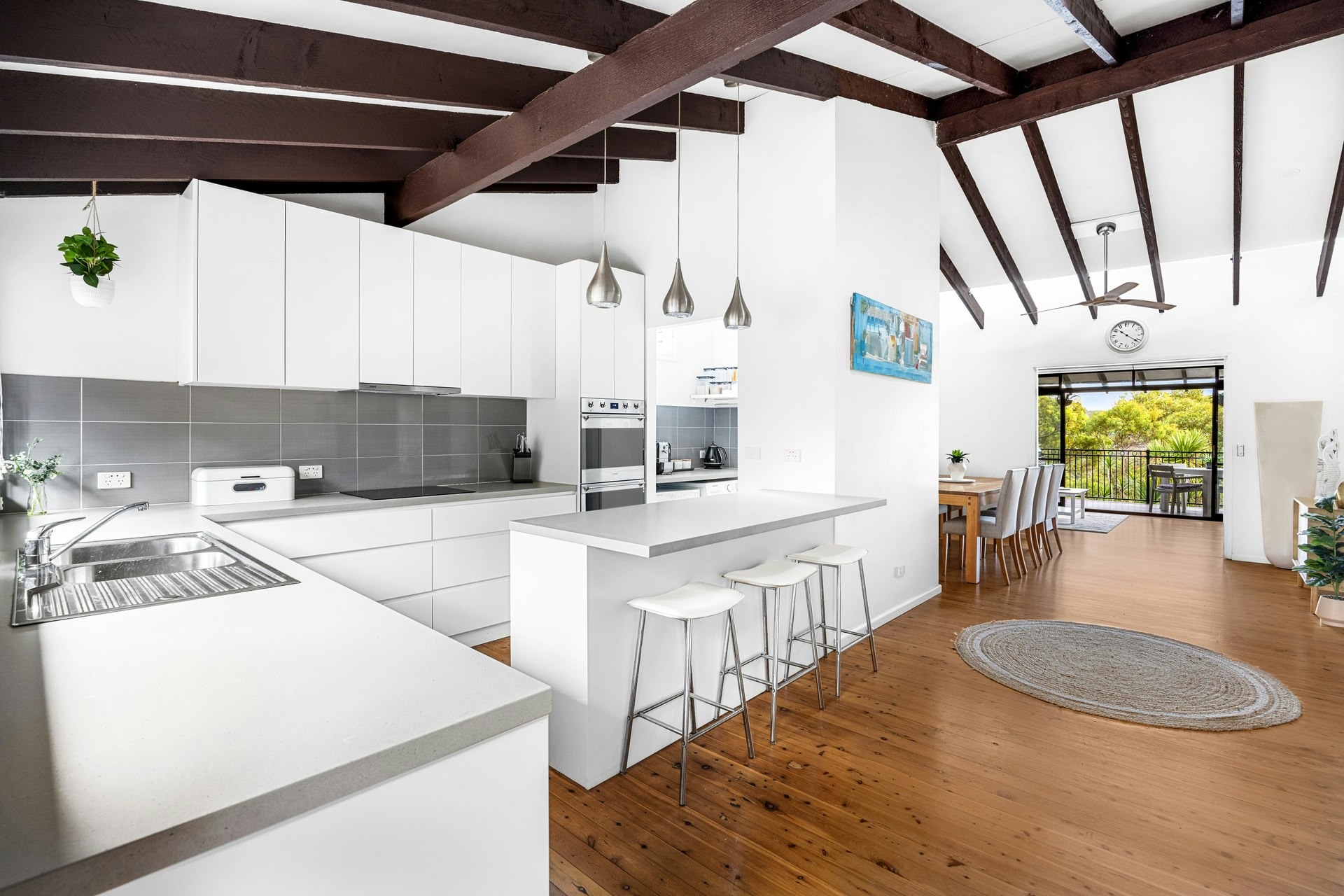 Downstairs, a spacious bedroom and home office seamlessly connect to the backyard, offering versatile living arrangements ideal for older children or in-law accommodation. Additional features include pine floorboards, a gas outlet, ample under-house storage, and a double carport, providing both convenience and comfort for everyday living.