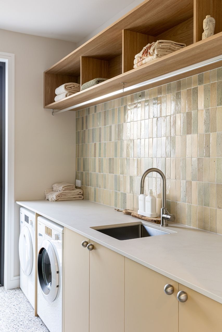 • Well-equipped laundry with an abundance of storage, hanging rail and access to outdoors