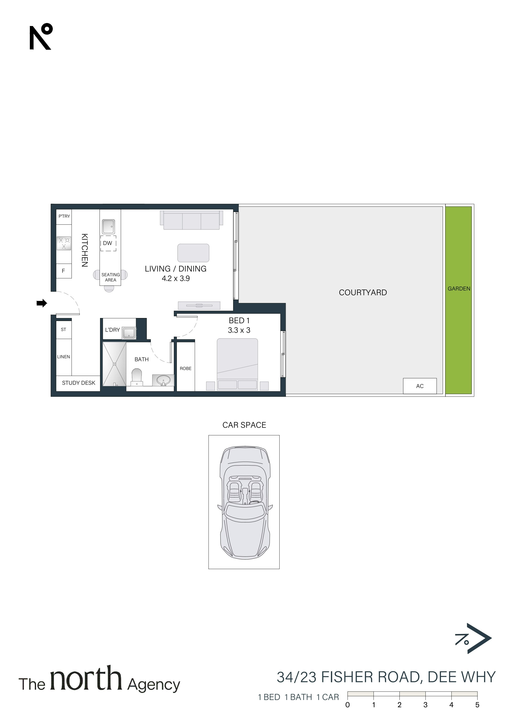 - Internal laundry, secure car space and storage