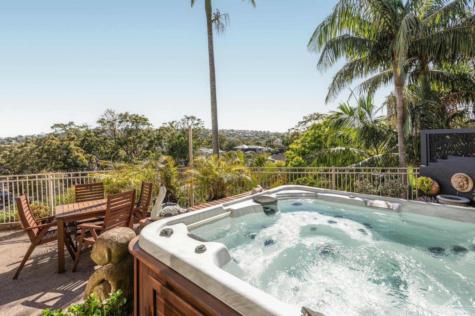 - Alfresco entertaining deck with sparkling spa and tranquil pond