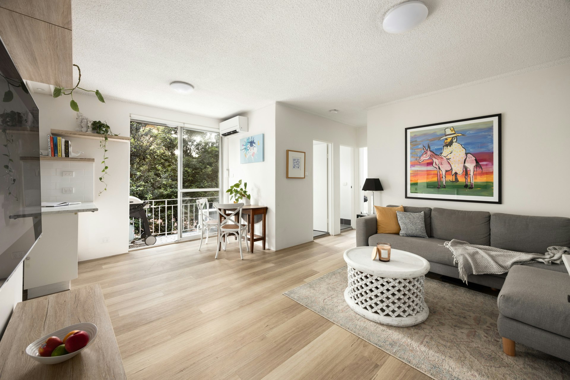 • Stylish floorboards, air conditioning, and fresh paint throughout