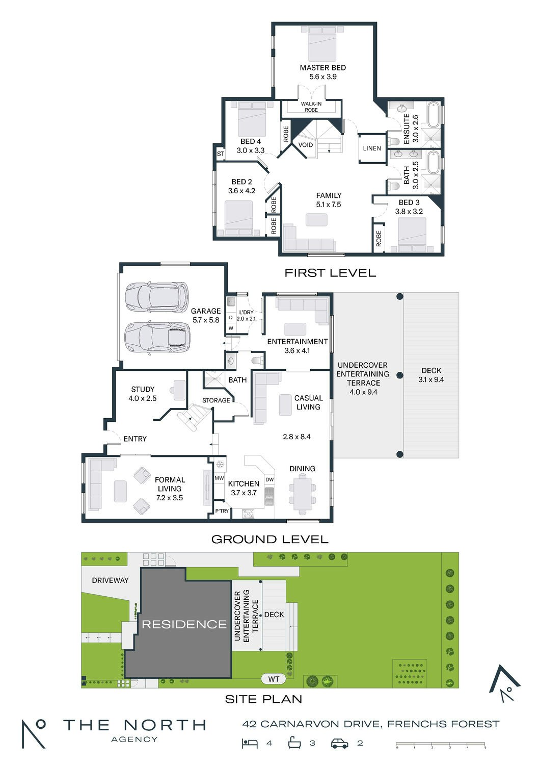 On the upper level, four bedrooms with built-in wardrobes including a master suite with ensuite and walk-in robe rest with a third living area at its anchor point. The free-flowing light-filled interiors offer an abundance of storage throughout, media room, home office and formal living area. Superbly placed in a family friendly neighbourhood, close to Wakehurst Public School, Davidson High School, Forestway Shopping Centre, buses to CBD and Chatswood, Northern Beaches Hospital, Playing Fields, Playgrounds and a short drive to beaches.