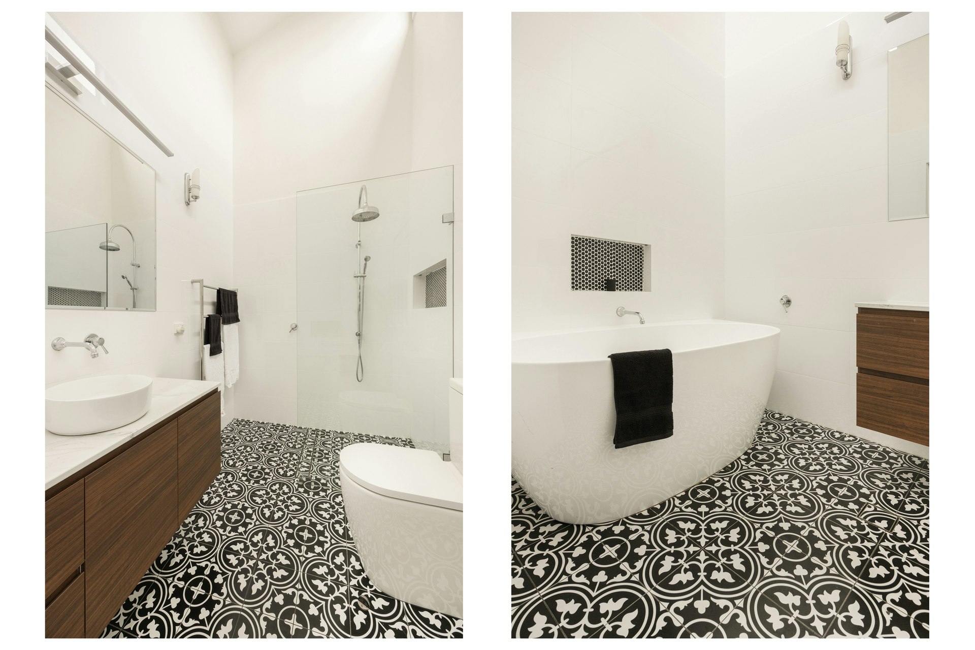 • Main bathroom with freestanding bath, frameless shower screen, heated towel rail