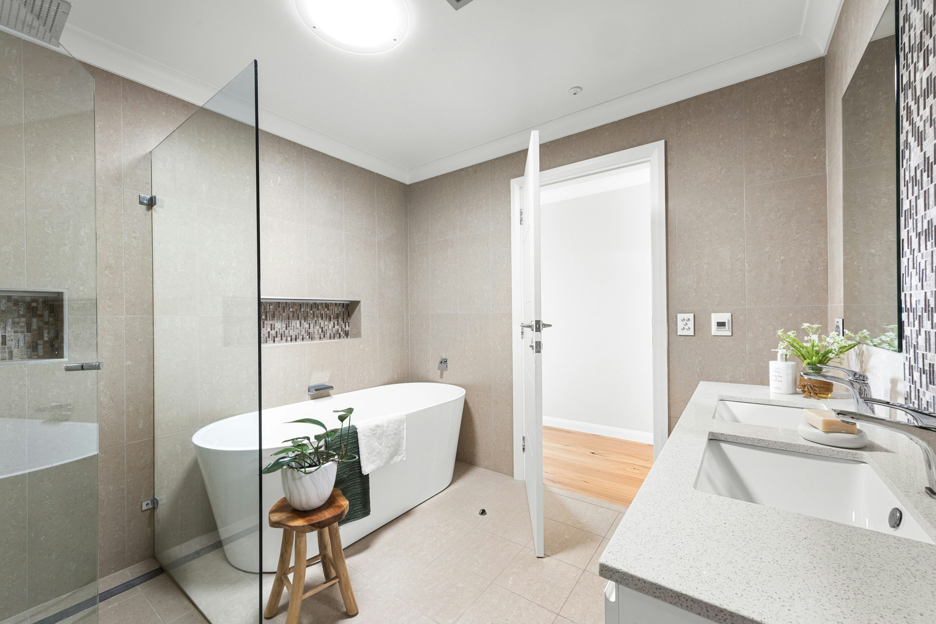 Luxury Bathrooms – The main bathroom is equipped with underfloor heating, heated towel rails, a rain shower, a freestanding bath, and dual basins.