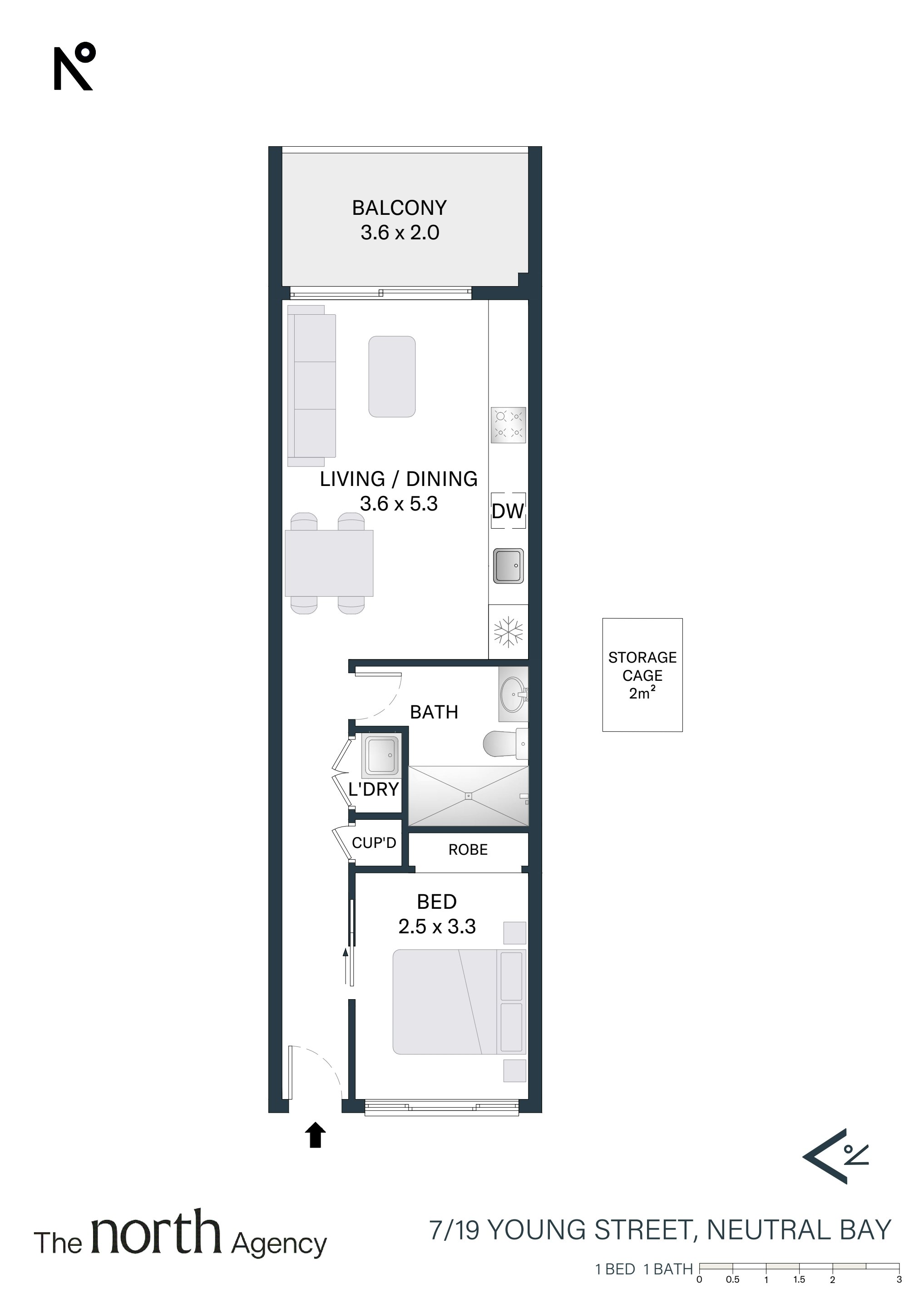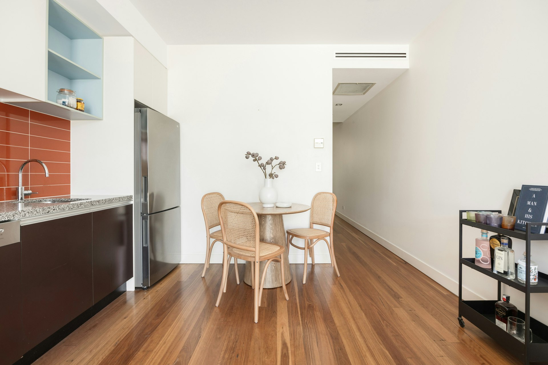 Tucked away at the rear of a boutique security complex, this impeccably appointed one-bedroom apartment delivers a refined blend of space, style and privacy in the heart of Neutral Bay. Designed for effortless living and entertaining, it features a generous open-plan layout with quality timber flooring, a sleek Miele-equipped kitchen, and a sun-drenched balcony that extends the living space outdoors.
