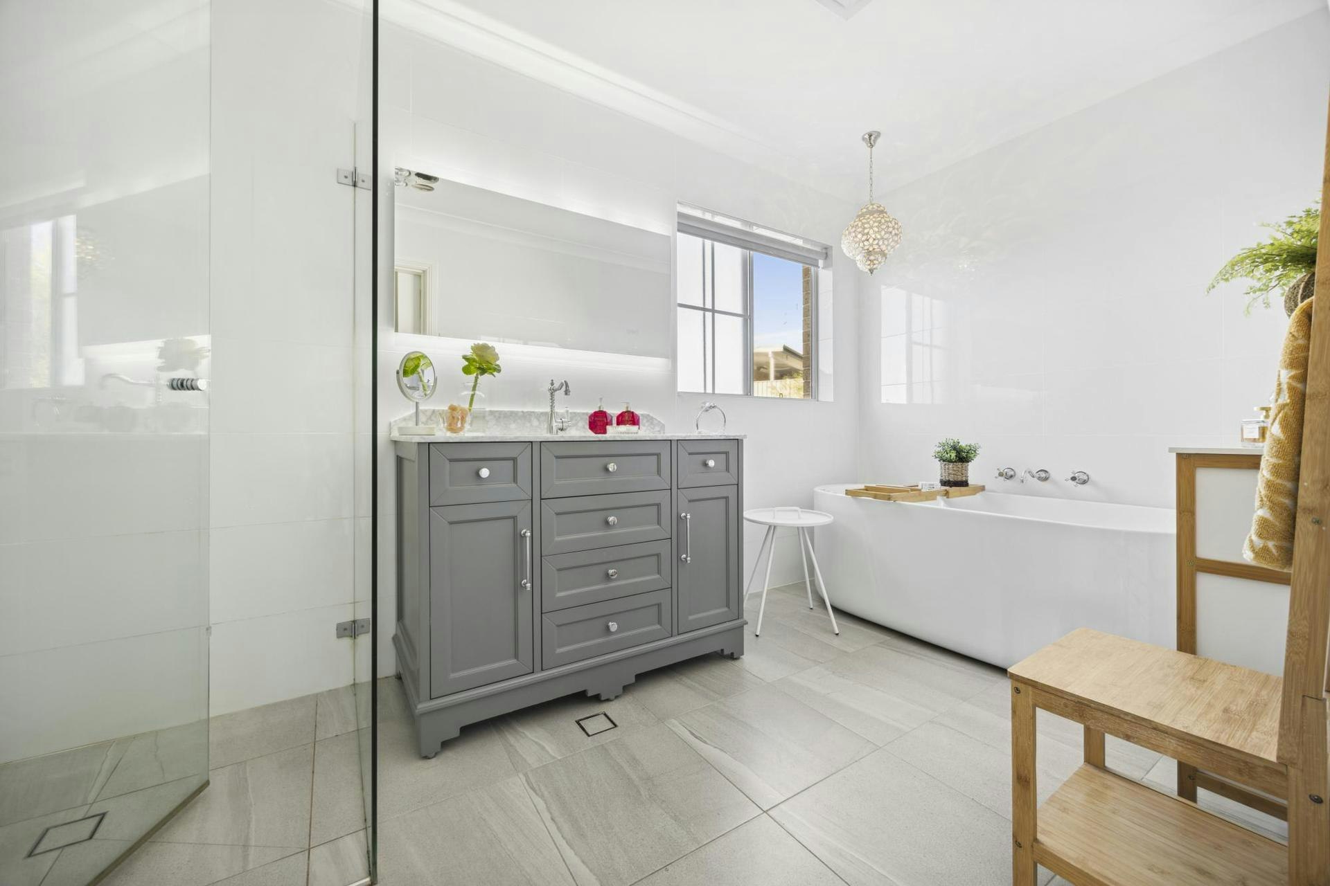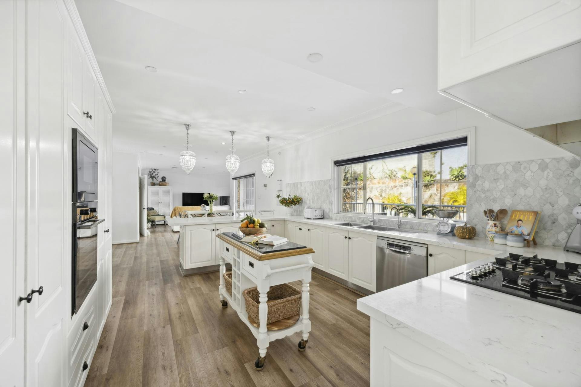 Offering a luxurious sense of space throughout and positioned in a quiet tranquil cul-de-sac setting, this tri-level five-bedroom home reveals renovated contemporary high-end finishes and a separate one-bedroom granny flat with a sequestered entrance. The light-filled interiors offer a deluxe gas stone kitchen with butler's pantry and multiple living and dining areas flowing seamlessly to the outdoors through glass doors.