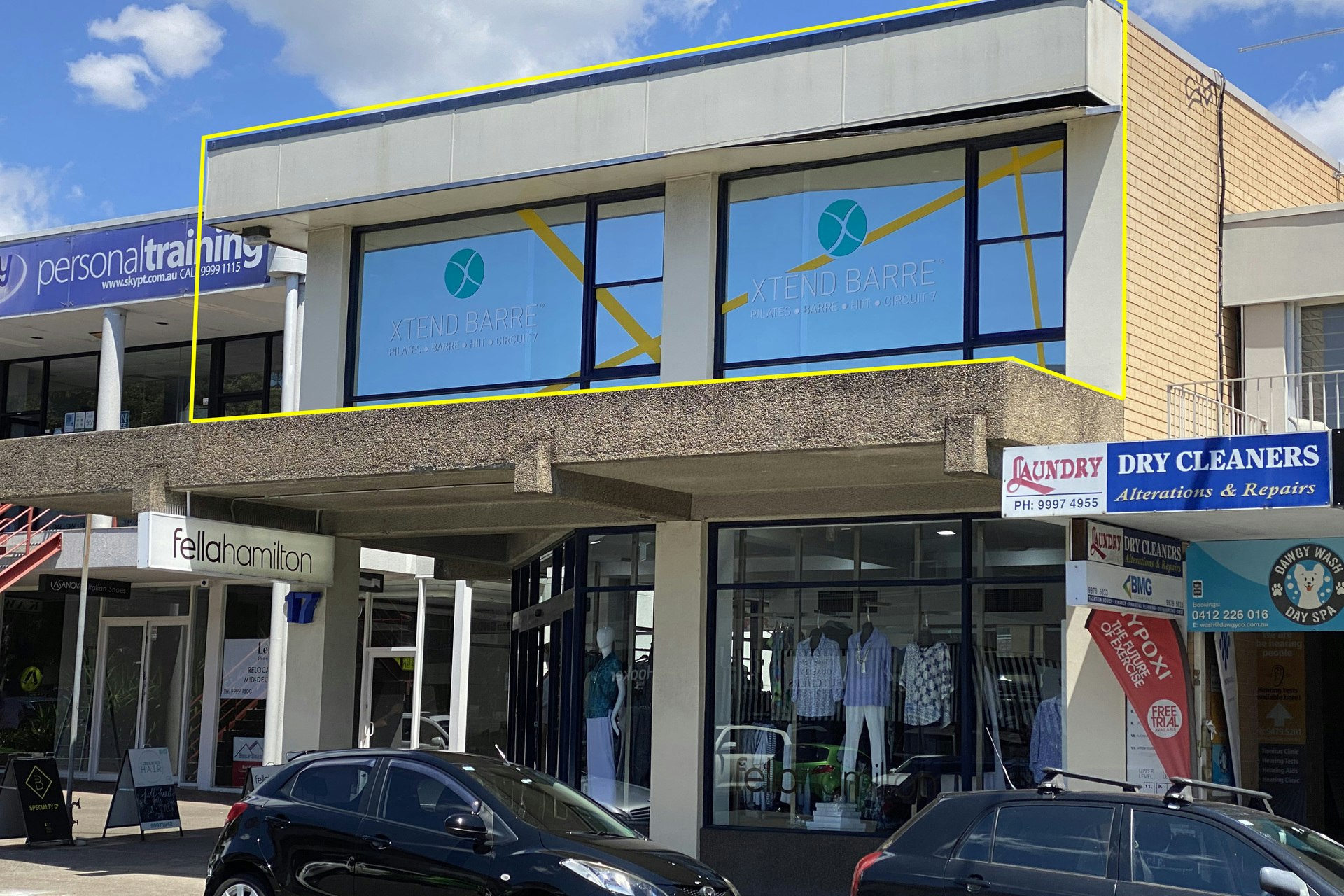First floor corner position at the front of a busy shopping arcade, close to all amenities including, Shops, Banks, Cafes, and Local Schools.