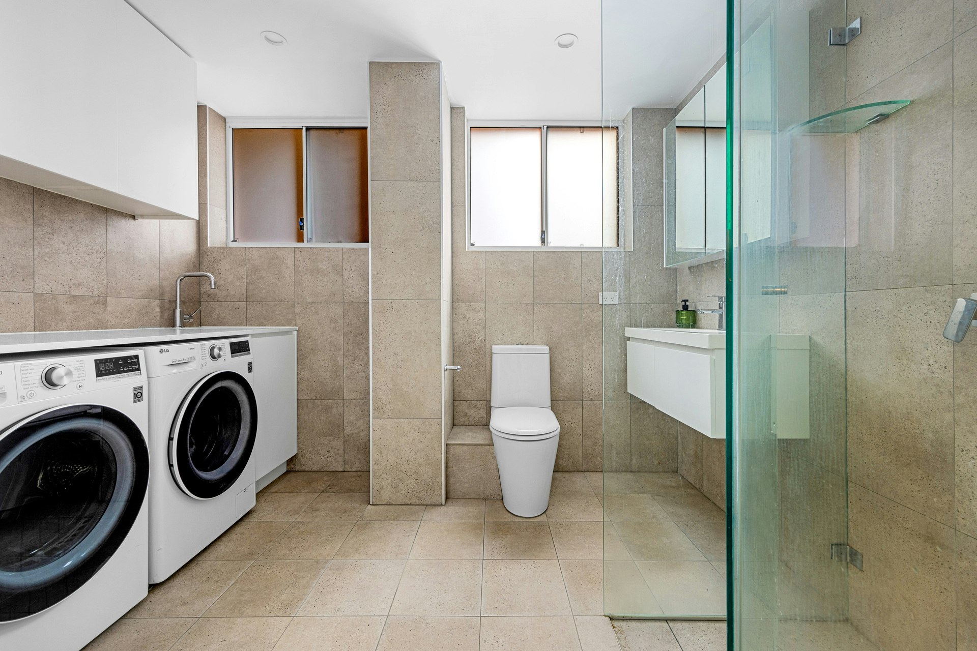 • Combined bathroom and laundry with ample bench space, overhead storage heated tiles and towel racks