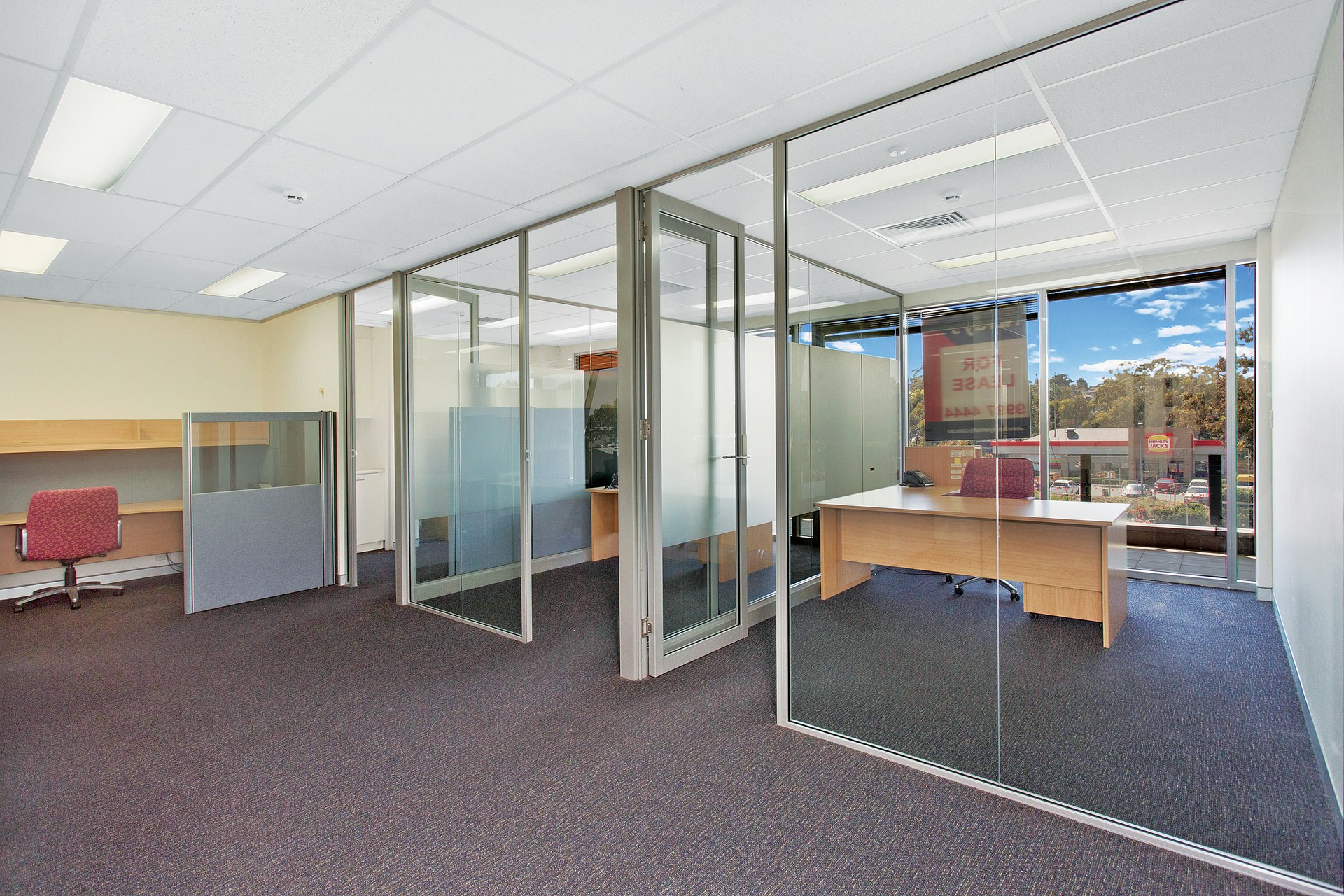 - Boardroom, separate offices and open plan work station area