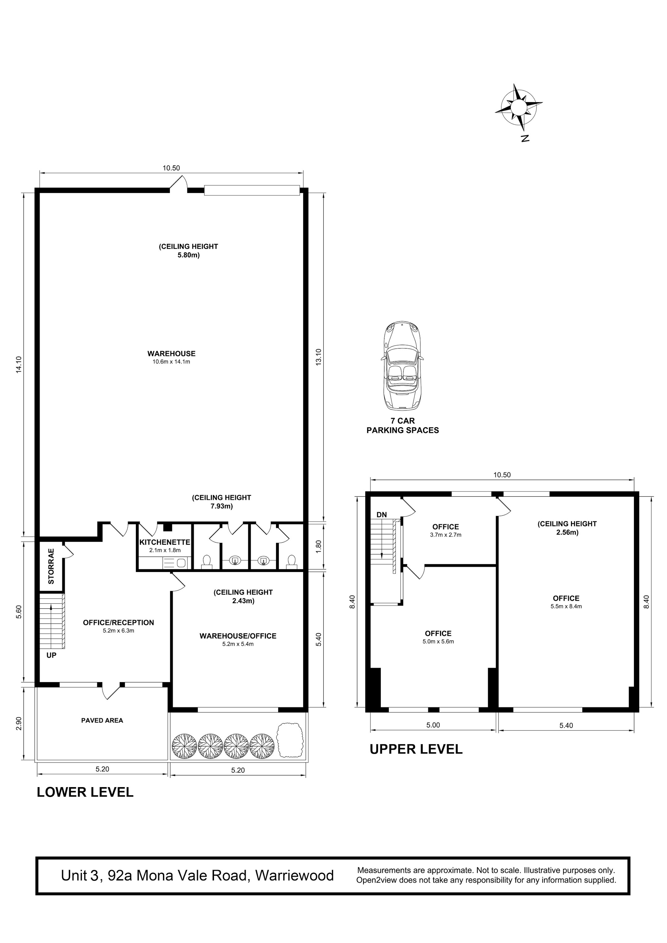 - Unit 2 area: 281 sqm plus 35 sqm office extension (nca)