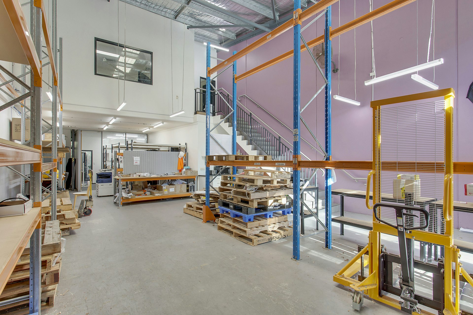• Compact mezzanine-level office with excellent natural light and air conditioning